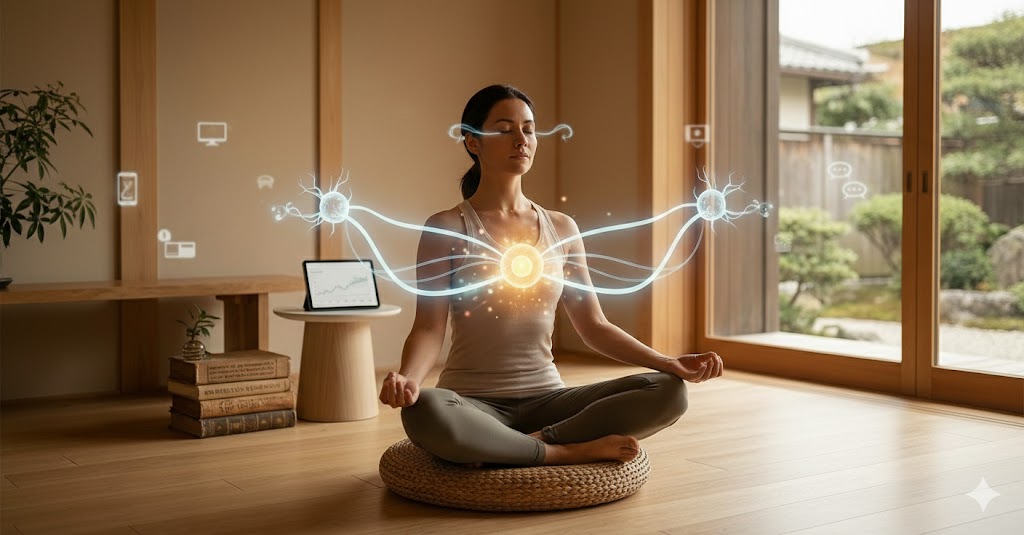 The common translation of Pratyahara as “withdrawal of the senses” fails to capture its true essence, which is defined not by isolation, but by mastery. In our technology-driven world, individuals are constantly bombarded by external stimuli—glowing screens, incessant notifications, and endless chatter—which conditions the nervous system to be reactive, anxious, and unfocused. Pratyahara is the skill of regulating this sensory input, empowering the practitioner to reclaim control over their attention and energy, moving from a state of constant reactivity to one of grounded presence.